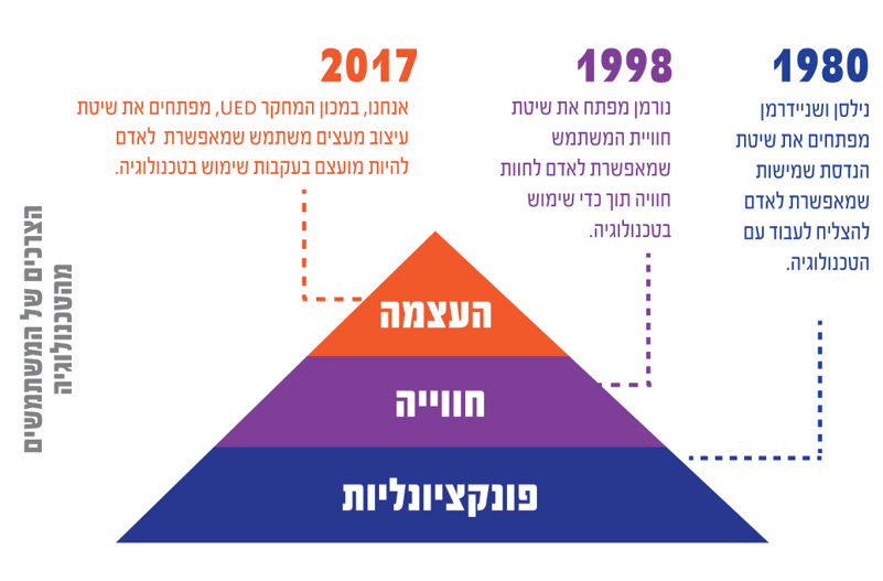 אנו במכון המחקר UED להעצמת משתמשים חוקרים, מפתחים ומלמדים את תעשיית ההייטק איך ליצור טכנולוגיה המשפיעה לטובה על חיי המשתמשים בה